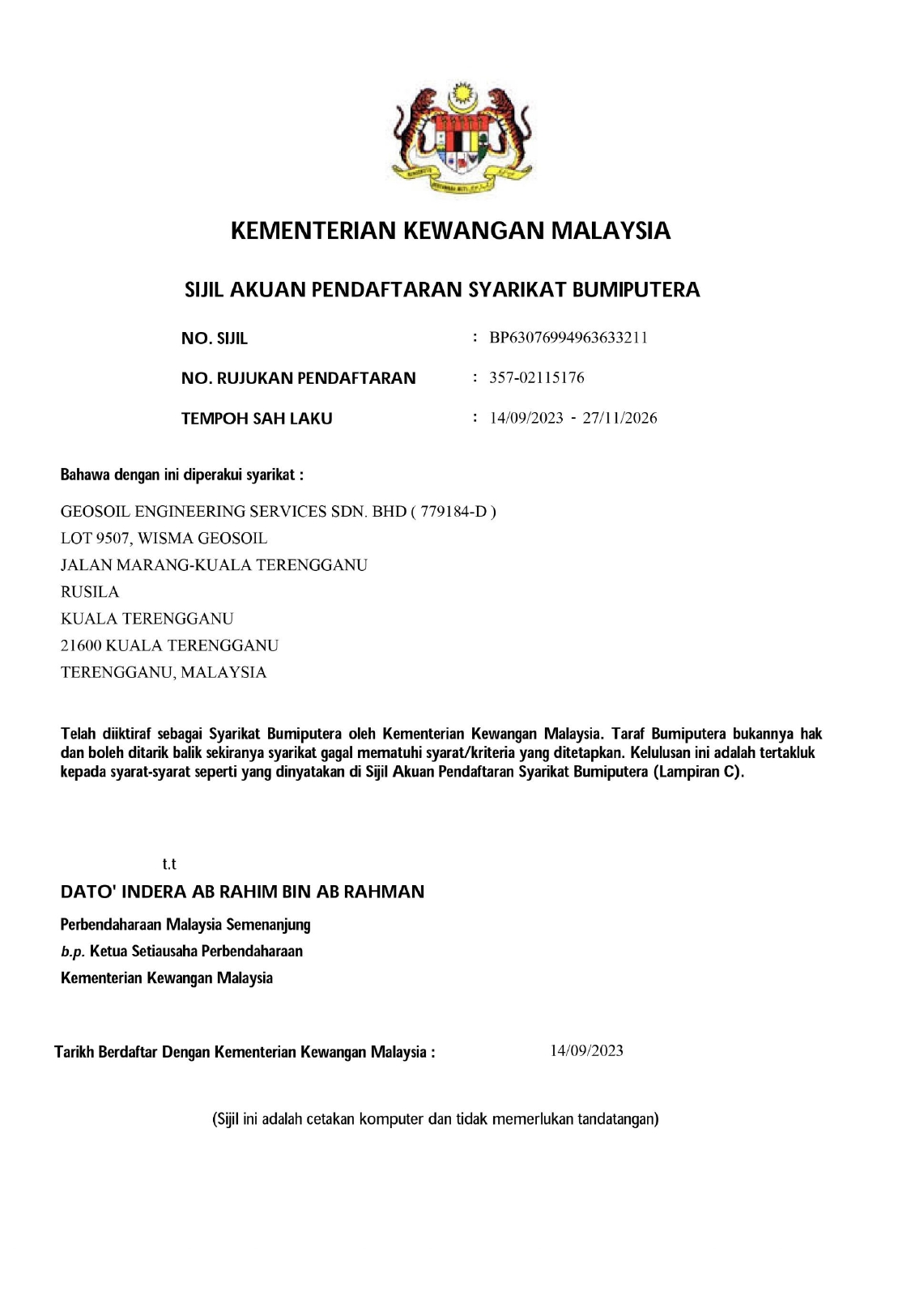 Lot 9507, Wisma Geosoil, Jalan Marang-Kuala Terengganu